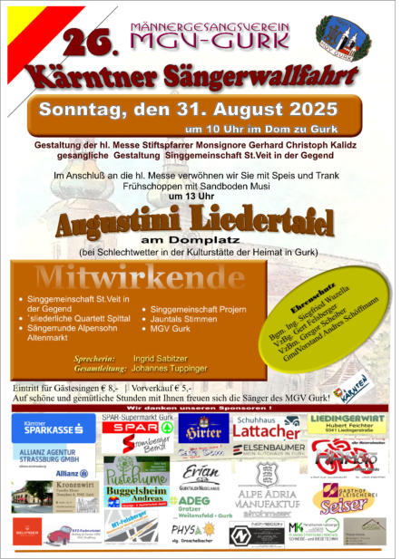 Herzliche Einladung zur26. Kärntner SängerwallfahrtAugustini Liedertafelam31. August 2025